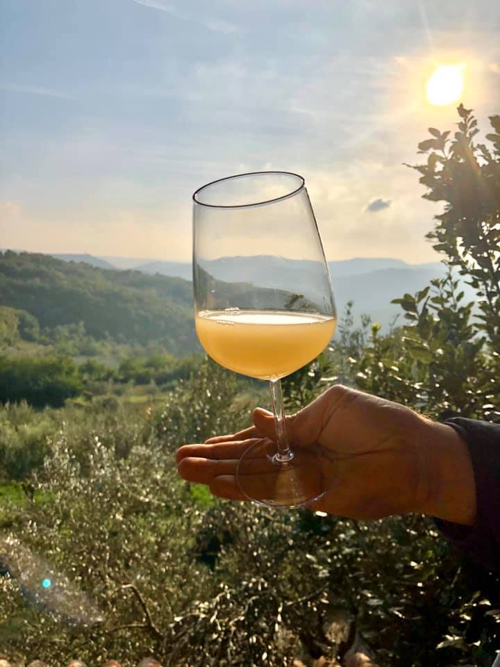 Toto oranžové víno se vyrábí z hroznů Malvasia v amfóře, které jsou zakopány do země.